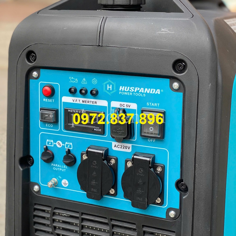 Máy Phát Điện Chạy Xăng 3.5Kw Huspanda H4300EI inveter chạy siêu êm, với công suất 3.5kw có thể chạy điều hòa 12000Btu cùng các đồ điện như quạt, đèn, tivi, tủ lạnh ...vv Máy nhỏ gọn, dễ di chuyển phù hợp mục đích đi cắm trại, để trên oto phục vụ công việc ...vv