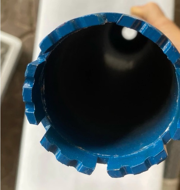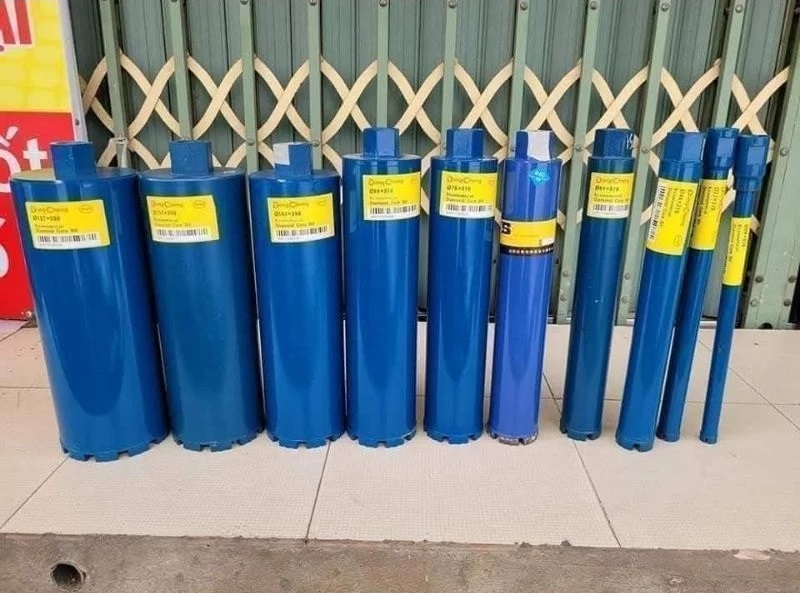 - Mũi khoan là dạng ống, 1 đầu được gắn với máy khoan bê tông, đầu còn lại dạng răng trực tiếp tiếp xúc với lớp bê tông cốt thép